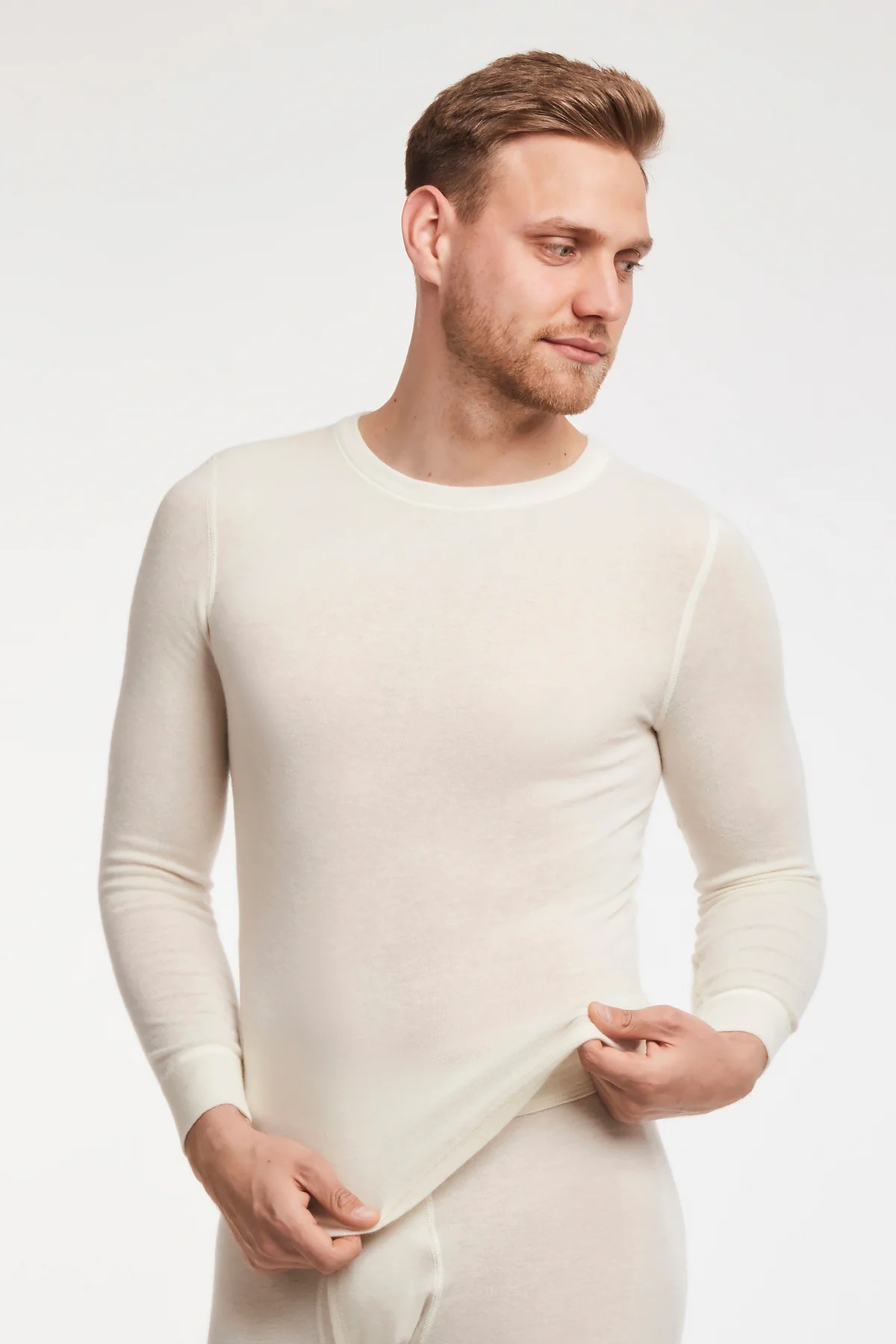 Cuando hace frío afuera, nuestra camisa de manga larga para hombre con 40% de angora te ayudará a pasar el día con comodidad. La fibra natural de alta calidad retiene eficazmente el calor corporal y crea un clima acogedor y cálido, sin agregar volumen.