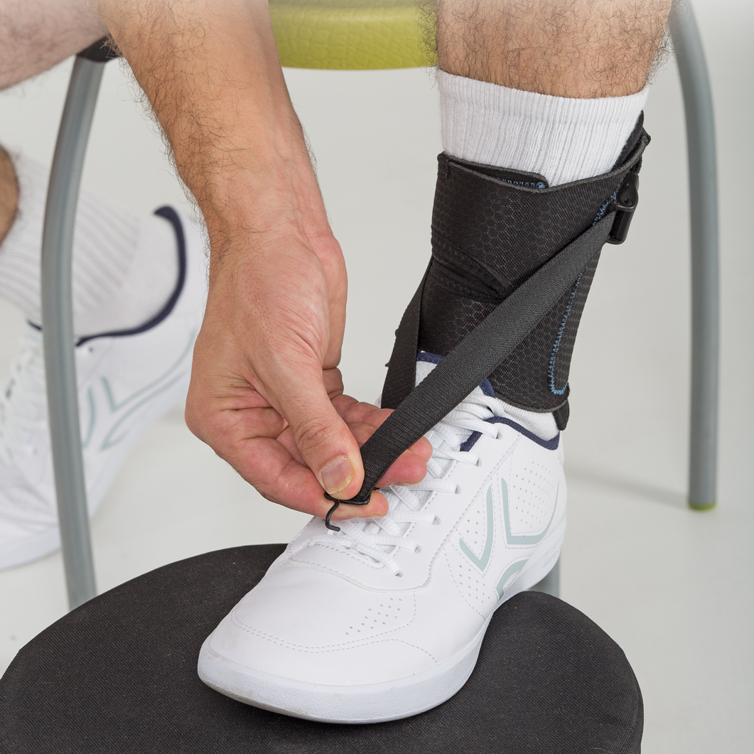 La polaina y la cincha elástica ajustable ayudan a mantener el pie en ángulo recto y previene el desequilibrio lateral.
